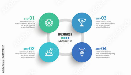 Business infographic design template with 4 options, steps or processes. Can be used for workflow layout, diagram, annual report, web design