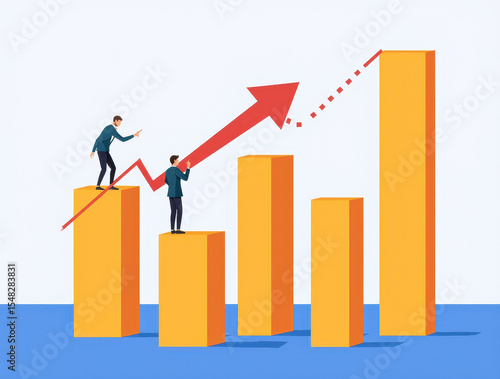 business, graph, chart, success, three-dimensional, growth, businessman, people, finance, diagram, up, arrow, person, concept, illustration, market, financial, progress, profit, bar, man, money, career, character, increase