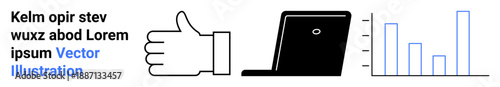 business, datum, engagement, management, feedback, productivity, strategy, approval, thumb up, success, chart, graph, technology, laptop, computer, digital, tool, analysis, growth, bar chart, performance, metaphor, concept, flat, web, simple, blue, black, landing, page, banner, text, website, marketing, economy, statistic, trend, connection, visualisation, report, dashboard, vector, illustration, icon
