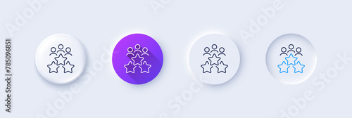 Business meeting line icon. Neumorphic, Purple gradient, 3d pin buttons. Employee nomination sign. Teamwork rating symbol. Line icons. Neumorphic buttons with outline signs. Vector
