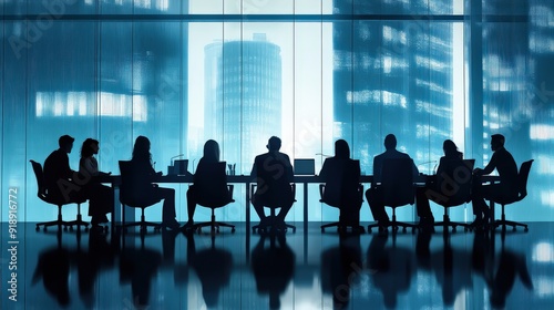 Business meeting with colleagues seated around a conference table.