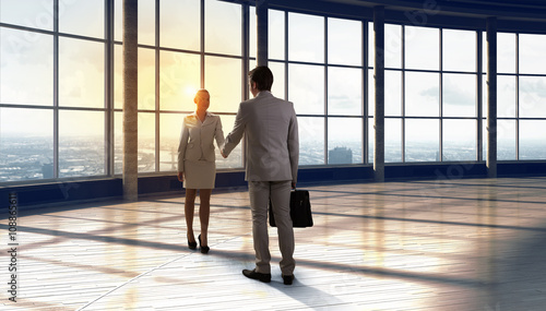 partnership, handshake, interior, window, elegant, agreements, panoramic, sunlight, sunset, sunrise, morning, dawn, business, office, modern, hand, cooperation, collaboration, shake, concept, businessman, businesswoman, people, manager, meeting, suit, 2, corporate, female, happy, male, professional, caucasian, contract, young, company, partner, staff, standing, success, together