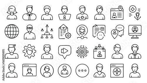 icon, icon, set, symbol, business, vector, people, web, signs, cyberspace, illustration, money, silhouette, office, design, media, social, management, computer
