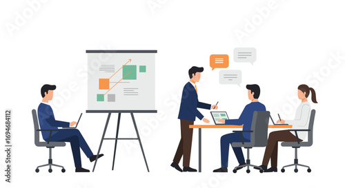 flat, business, meeting, presentation, teamwork, office, collaboration, professional, communication, workplace, corporate, discussion, planning, brainstorming, strategy, team, interaction, analysis, suit, project, graph, chart, concept, design, people, manager, employee, colleague, modern, growth, development