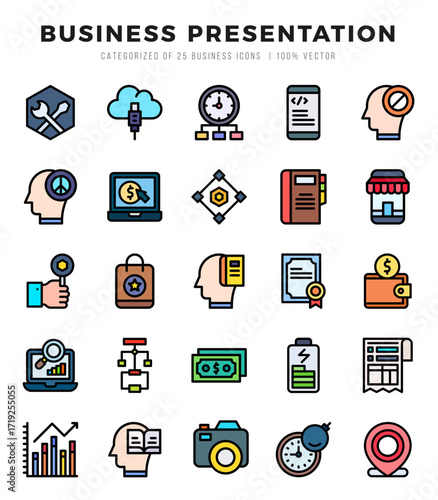 Business Presentation Icons Pack. Lineal Color icons set. Lineal Color icon collection set.