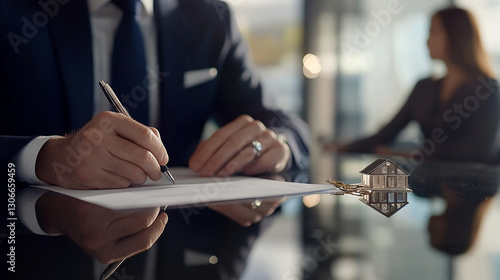 Business Professionals Signing Papers with Pens and Documents for Contract Agreement in an Office