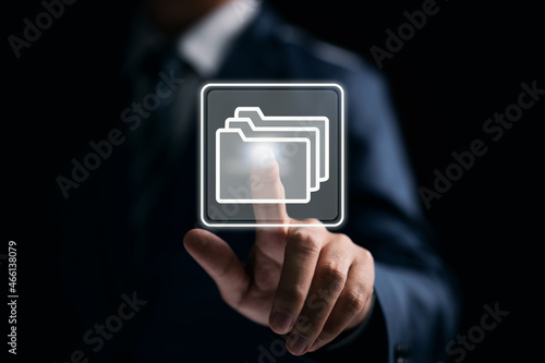 Business sign button web file folder icon, online documentation management.