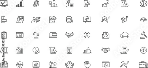 Business Strategy and Finance Line Icons Set – Growth, Analytics, Marketing, Startup, Investment and Management Outline Icons