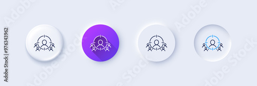 Business targeting line icon. Neumorphic, Purple gradient, 3d pin buttons. Marketing target strategy symbol. Aim with people sign. Line icons. Neumorphic buttons with outline signs. Vector