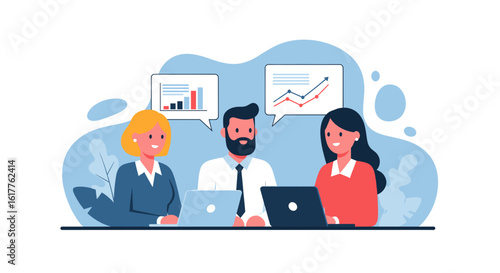 business, teamwork, collaboration, meeting, team, colleague, co-worker, office, laptop, computer, technology, datum, analysis, graph, chart, growth, progress, success, planning, strategy, discussion, communication, brainstorming, modern, illustration, vector, people, professional, infographic, marketing, finance, presentation, report, website, web design