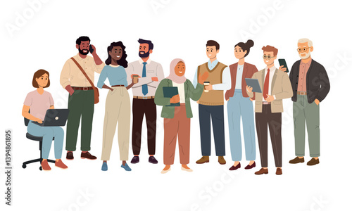 Business team. Group of diverse entrepreneurs. Office workers, corporate group of happy colleagues, employees, professionals, coworkers. Flat vector illustration on white background