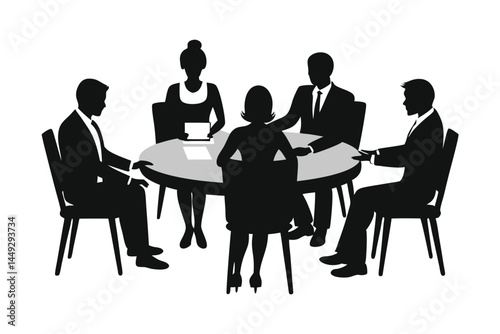 Business Team Meeting Silhouette Vector Around Round Table on White