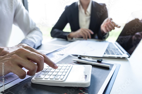 Business team on meeting conversation and collaboration discussing of partner cooperation to planning in investment trading marketing project to investor of deal a stock exchange to business profit