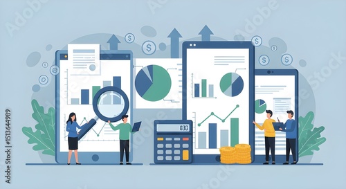 finance, business, report, analysis, datum, chart, graph, pie, bar, screen, digital, financial, statistic, growth, planning, profit, economy, corporate, professional, calculating machine, meeting, team, success, marketing, budget, income, review, performance, office, flat, vector, minimal, clean, technology, investment, management, strategy, infographic, tablet