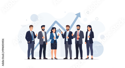 Business Team Standing in Front of Growth Chart Arrow, Teamwork and Success Concept