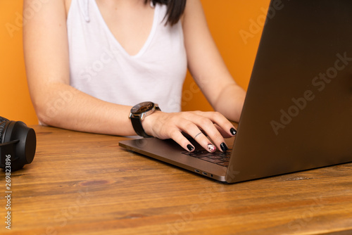 adult, boss, brunette, business, caucasian, computer, document, executive, female, girl, hispanic, cyberspace, lady, laptop, office, people, person, professional, sitting, table, technology, woman, woman, work, working, young
