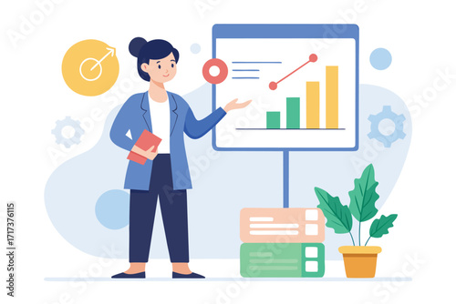 business, woman, presenting, datum, chart, graph, report, analysis, meeting, presentation, strategy, finance, statistic, information, success, career, professional, office, teamwork, collaboration, growth, planning, marketing, sale, illustration, vector, icon, design, concept, white, background, isolated, people, female, pointer