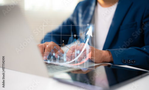 Businessman analyzing forex trading graph financial data. Stock Market Investments Funds and Digital Assets. Business finance technology and investment concept. Business finance background.
