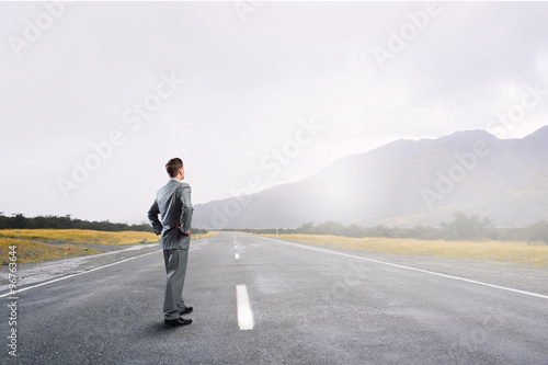 businessman, road, success, confident, direction, way, street, forward, future, business, rear, back, waist, asphalt, highway, optimism, career, work, man, opportunity, take, choose, achievement, possibility, determination, guide, goal, confidence, achieve, follow