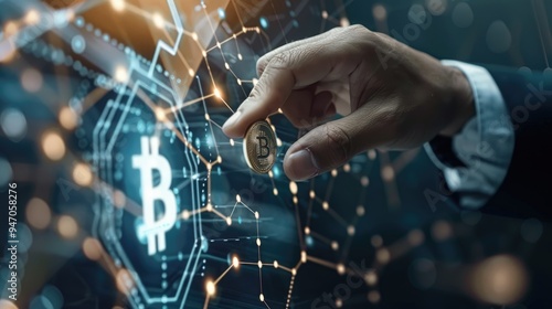 Businessman executing a blockchain-enabled currency exchange