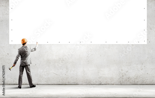 Businessman fixing banner