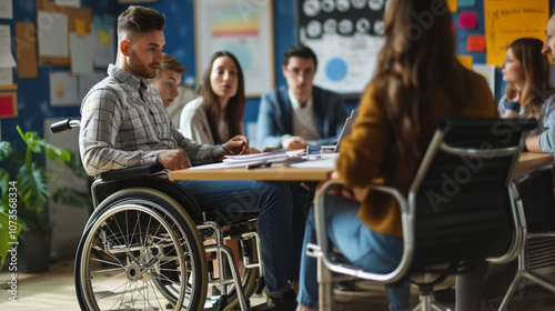 wheelchair, disabled, disability, woman, handicapped, people, handicap, elderly, business, senior, sitting, person, old, work, office, couple, smiling, health, car, businessman, hospital, chair, nurse, health care, care, cafes, eatery, hot drink, meeting, table, working, computer, group, man, businesswoman, laptop, shop, bar, store, classroom, patient, home, team, conference, businessperson, professional, teamwork, training, talking