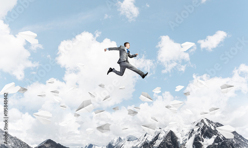achievement, blue, business, businessperson, career, challenge, cloud, conceptual, high, jump, leaping, sky, suit, skyscape, nature, mountain, environment, jumping, three-dimensional, rendering, run, running, active, lifestyle, activity, success, elegant, employee, late, hurry, young, attractive, professional, caucasian, male, man, businessman, adult, race, deadline, flying, paper, plane