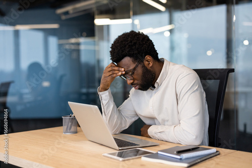 business, office, work, stress, laptop, computer, corporate, desk, employee, professional, men at work, person, man, businessman, male, staff, entrepreneur, african, black man, afro, pressure, technology, deadline, workspace, sharpened, challenge, fatigue, overwhelmed, efficiency, productivity, task, strategy, goal, meeting, planning, thinking, writing, stationery, document, stressful, analysis, decision, innovation, organisation, phone, mobile, digital, inside, job, occupation