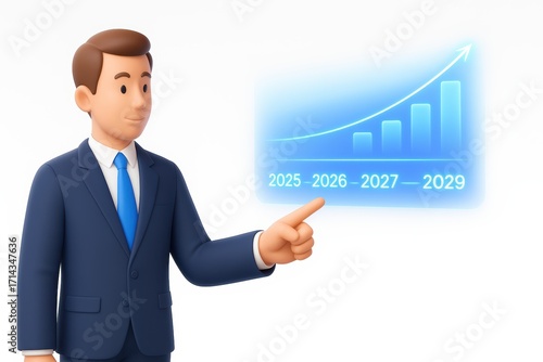 Businessman Presenting Growth Chart with Projections for Future Years in Professional Setting