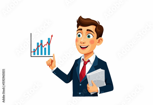 Businessman presenting growth chart with smile in professional suit