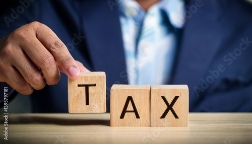 Businessman removes wooden blocks with the word Tax. The concept of reducing the tax burden. Tax avoidance. Costs and expenses of the business. Taxation. Pay off debt. Freedom from illegal taxes