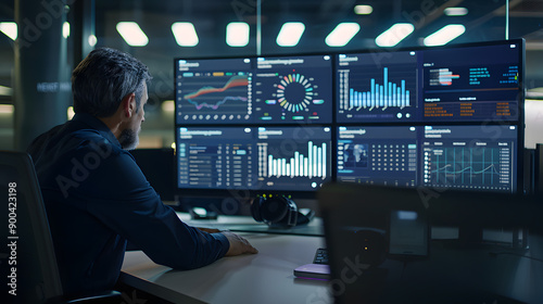 dashboard, businessman, reviewing, proactive, technology, finance, security, analysis, datum, screen, professional, workspace, responsibility, protection, peace of mind, information, monitoring, concept, business, success