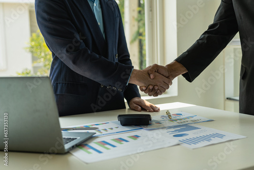 Businessman shaking hands with partners greeting, deal merger, business venture concept, investment, teamwork and successful business. remote picture