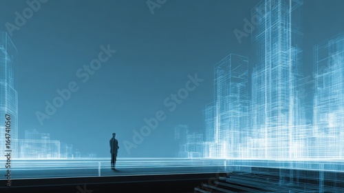 futuristic, modern, urban, development, city, city landscape, technology, innovation, business, man, digital, skyline, architecture, building, future, abstract, virtual, reality, cyberspace, network, connection, communication, datum, structure, design, engineer, hologram, projection, intelligent, artificial, intelligence, ai, automation, smart, solution, transformation, growth, opportunity, concept