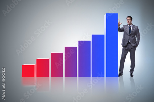Businessman standing next to bar chart in business concept