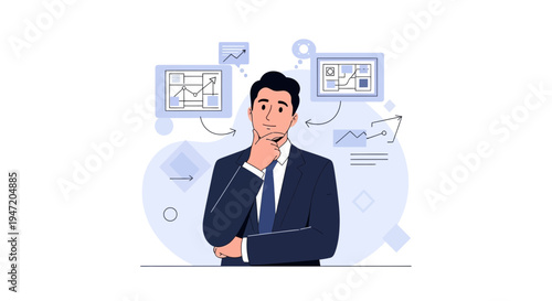 business, man, thinking, strategy, datum, analysis, chart, graph, decision, making, planning, contemplation, professional, office, corporate, intelligence, brainstorming, concept, illustration, digital, finance, growth, insight, mind, idea, sharpened, management, research, success, work