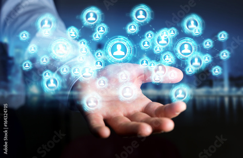 Businessman using social network interface 3D rendering