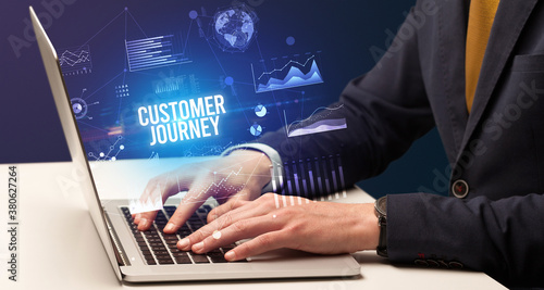 Businessman working on laptop with CUSTOMER JOURNEY inscription, new business concept