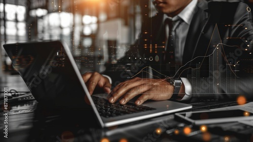 businessman, laptop, financial, datum, overlay, chart, graph, business, professional, success, technology, growth, investment, analysis, strategy, market, trend, stock, office, work, desk, keyboard, hand, typing, digital, modern, future, innovation, progress, economy, global, entrepreneur, executive, leadership, ambition
