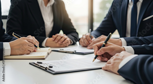 agreements, signing, contract, business, office, document, pen, hand, legal, paperwork, businessman, businesswoman, corporate, desk, meeting, review, strategy, teamwork, writing, people, partnership, lawyer, client, negotiate, solution, workspace, collaboration, plan, working, formal, adult, caucasian, finance, executive, professional, job, career, manager, discussing, employee, suit, table, notepad, indoor, closeup, arrangement, lifestyle