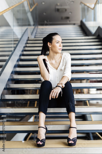 Businesswoman sitting on stairs