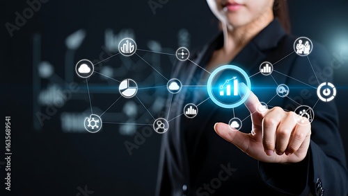 businesswoman, innovation, artificial intelligence, corporate, marketing, presentation, finance, graph, chart, diagram, networking, global, communication, progress, achievement, efficiency, success, management, strategy, planning, analysis, development, growth, information, technology, connection