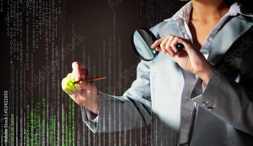 datum, research, concept, glasses, search, virus, hacker, business, businesswoman, network, cyberspace, code, see, program, protect, malicious, binary, find, discovery, information, digital, inspect, magnifying, firewall, solution, technology, security, woman, computer, equipment, magnification, examining, safety, look, help, investigation, magnify, zoom, pad, tool, tongs, optical, software, infect, magnifier, identity, communication
