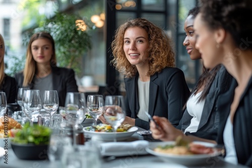 businesswoman, meeting, luncheon, eatery, discussion, networking, professional, dining, modern, idea, collaboration, business, group, woman, conversation, teamwork, corporate, meal, strategy, gathering, business meeting, table, executive, productivity, professional, colleague, food, career