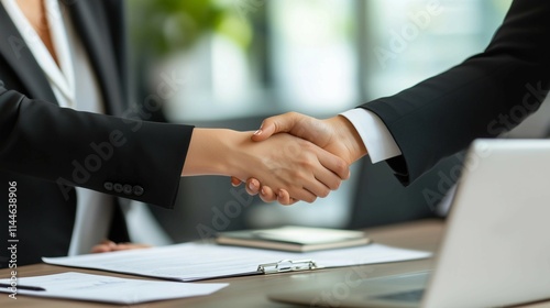 Bussiness people shaking hands to celebrate the deal in office,business concept,copy space