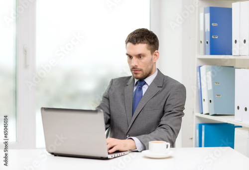 busy businessman with laptop and coffee