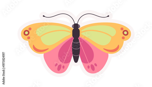 Butterfly Spread Wings Cartoon Style