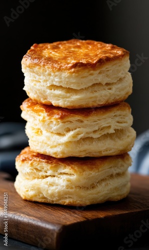 Buttermilk biscuit: flaky texture, golden crust, soft interior, homemade delight, southern tradition, buttery taste, oven-baked treat, comforting flavor, classic recipe, warm goodness.