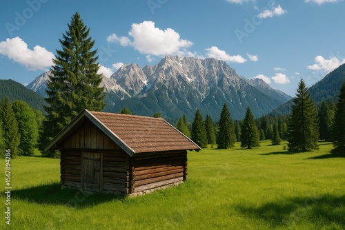 bavarian, hut, landscape, summer, nature, tree, pine, bavaria, zugspitze, mountain hut, german, panorama