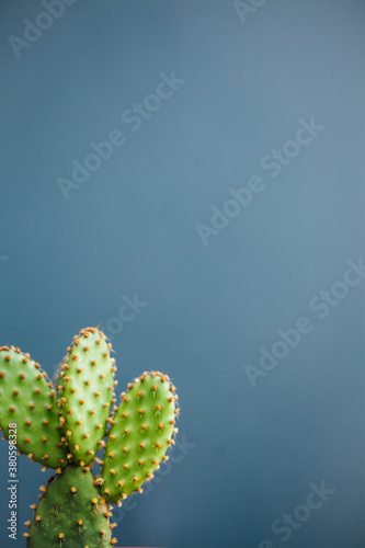 wall, simple, prickly pear, plant, plain, closeup, cactus, botany, blue, blue background